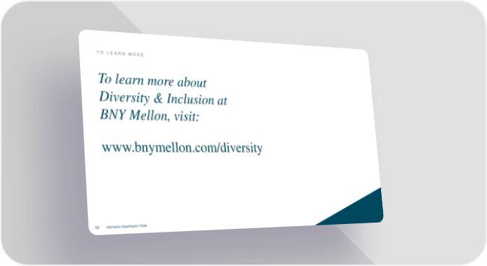 Diversity & Inclusion Strategy 2020 Page 12 Page 14TO LEARN MORE To learn more about Diversity & Inclusion at BNY Mellon, visit: www.bnymellon.com/diversity Information Classification: Public 12