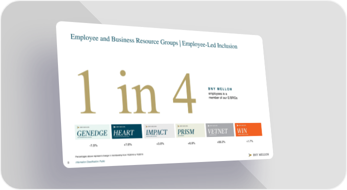 Employee and Business Resource Groups | Employee-Led Inclusion BNY MELLON employees is a member of our E/BRGs -7.5% +7.6% +3.0% +6.9% +68.2% +1.7% Percentages above represent change in membership from YE2018 to YE2019 Information Classification: Public 8