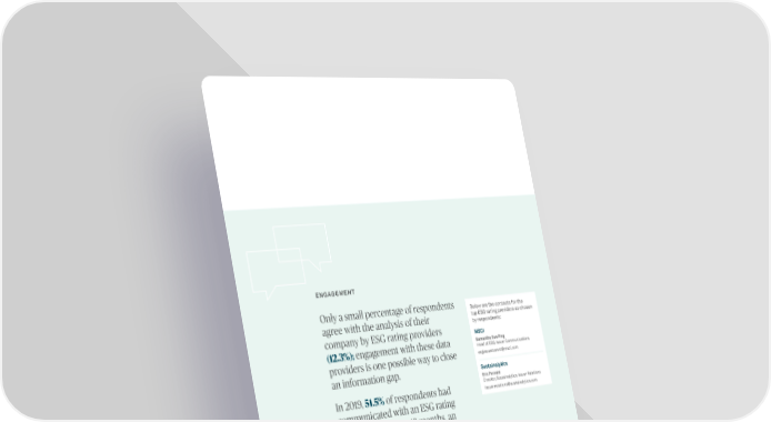 ENGAGEMENT Only a small percentage of respondents Below are the contacts for the agree with the analysis of their top ESG rating providers as chosen company by ESG rating providers by respondents: MSCI (12.3%); engagement with these data Samantha Sue Ping Head of ESG Issuer Communications providers is one possible way to close esgissuercomm@msci.com an information gap. Sustainalytics Eric Fernald In 2019, 51.5% of respondents had Director, Sustainalytics Issuer Relations issuer.relations@sustainalytics.com communicated with an ESG rating provider in the past 12 months, an increase from 34.0% in 2017, but still, only slightly more than half. 17