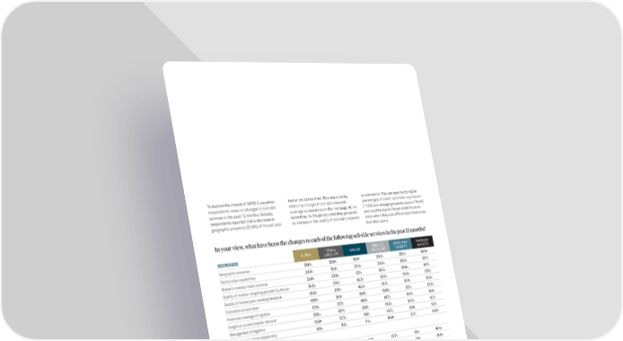 To explore the impact of MiFID II, we asked had an impact on them. This was possibly access teams. This was reported by higher respondents’ views on changes to sell-side related to changes in sell-side research percentages of small- and micro-cap issuers services in the past 12 months. Globally, coverage as described on the next page. At the (17.3%) and emerging markets issuers (16.4%) respondents reported that a decrease in same time, 14.3% globally said they perceived and could be due to the sell side’s focus on geographic presence (25.0%) of the sell side an increase in the quality of sell-side corporate areas where they can differentiate themselves from their peers. In your view, what have been the changes to each of the following sell-side services in the past 12 months? DECREASED GLOBAL MEGA & MID-CAP SMALL & DEVELOPED EMERGING LARGE-CAP MICRO-CAP MARKETS MARKETS Geographic presence 25.0% 23.8% 19.8% 29.3% 20.1% 26.9% Equity sales capabilities 24.5% 21.1% 23.4% 24.0% 26.2% 18.7% Broker’s investor client universe 21.8% 27.9% 17.1% 18.7% 25.6% 18.7% Quality of investor targeting provided by broker 21.5% 23.1% 16.2% 22.7% 24.4% 17.0% Quality of formal post-meeting feedback 19.2% 17.0% 16.2% 17.3% 18.3% 15.2% Corporate access team 19.0% 21.1% 18.9% 20.0% 17.7% 22.2% Financial coverage of logistics 17.9% 17.7% 18.9% 18.7% 18.3% 18.1% Insight on current investor demand 17.6% 17.7% 12.6% 13.3% 18.3% 11.7% Management of logistics 13.0% 12.2% 9.0% 14.7% 11.6% 11.7% Investment banking relationship 9.5% 9.5% 8.1% 16.0% 6.7% 14.0% INCREASED Corporate access team 14.3% 13.6% 9.0% 17.3% 9.1% 16.4% Insight on current investor demand 12.4% 10.9% 13.5% 10.7% 7.9% 15.8% Investment banking relationship 10.8% 6.8% 9.0% 14.7% 6.1% 12.9% Quality of investor targeting provided by broker 9.5% 8.8% 9.9% 14.7% 7.3% 13.5% Quality of formal post-meeting feedback 9.3% 8.2% 7.2% 9.3% 6.1% 10.5% Geographic presence 8.1% 10.2% 8.1% 4.0% 3.7% 12.3% Equity sales capabilities 6.2% 7.5% 4.5% 9.3% 2.4% 11.1% Broker’s investor client universe 4.9% 5.4% 6.3% 1.3% 3.0% 6.4% Management of logistics 4.7% 6.1% 4.5% 1.3% 2.4% 6.4% Financial coverage of logistics 2.3% 1.4% 3.6% 1.3% 0.6% 3.5% 30