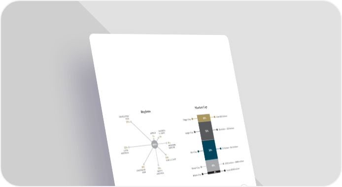 Regions Market Cap DEVELOPED ASIA 24% Mega-Cap 12% Over $25 billion AFRICA EASTERN 1% EUROPE 4% Large-Cap 32% $5 billion – $25 billion 22% 100% 9% LATIN WESTERN AMERICA EUROPE 10% Mid-Cap 33% $1 billion – $4.9 billion MIDDLE EAST 18% EMERGING 13% ASIA NORTH AMERICA Small-Cap 19% $150 million – $999 million Micro-Cap 4% Under $150 million Sectors 5% 6% 6% 7% 8% 8% 12% 13% 14% 21% HEALTHCARE ENERGY UTILITIES TELECOM BASIC CONSUMER CONSUMER INDUSTRIALS TECHNOLOGY FINANCIALS MATERIALS STAPLES DISCRETIONARY 37